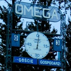 1979r.: „Omega” zostaje przeniesiona za drugą bramkę (gdzie stoi do dziś), a w jej miejsce zostaje zamontowany zegar „Elektromontażu”, który działał tylko kilka sezonów.